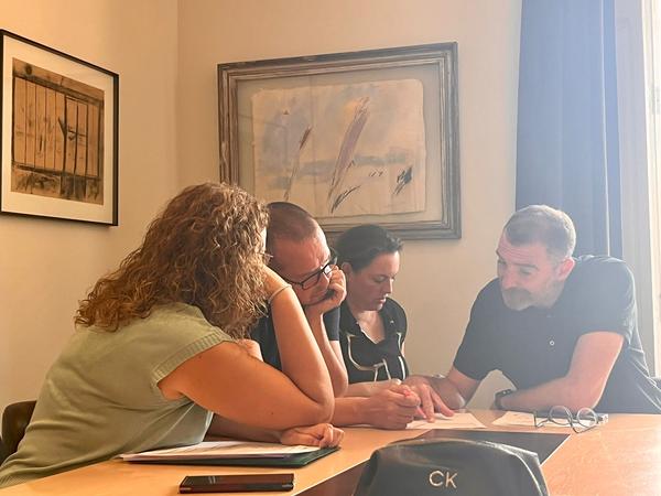 P.S. If you’ve already found your property, let us know—we’d love to celebrate with you! 🎉 These clients have and here is Paul explaining in the notary the details of their mortgage.. It's like renaissance art!